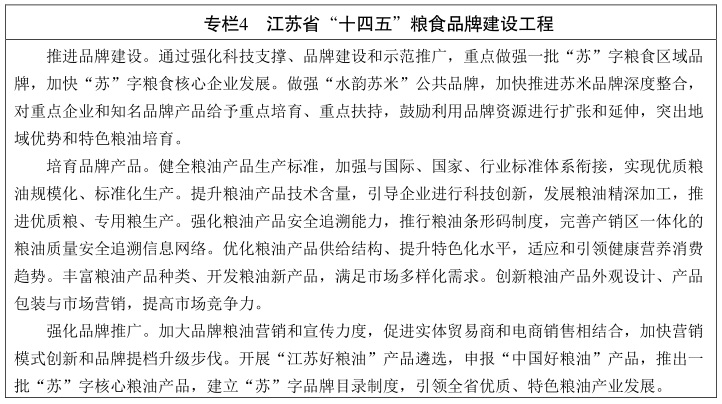 大力推進優(yōu)質(zhì)糧源基地建設(shè)。深入實施優(yōu)質(zhì)糧食保障供應(yīng)工程,推動優(yōu)質(zhì)品種規(guī)模生產(chǎn)和訂單種植,建設(shè)“蘇”字品牌核心生產(chǎn)基地,提升優(yōu)質(zhì)糧食供應(yīng)能力。依托示范縣(市、區(qū))、特色園區(qū)、加工基地、龍頭企業(yè)等載體,培育一批優(yōu)質(zhì)糧源基地。加強蘇北、蘇中糧食基地建設(shè),持續(xù)推進蘇北地區(qū)建設(shè)優(yōu)質(zhì)稻谷、中強筋小麥生產(chǎn)基地,大力推動蘇中沿江及里下河地區(qū)建設(shè)優(yōu)質(zhì)稻谷、專用小麥、雙低油菜、食用大豆生產(chǎn)基地,穩(wěn)定蘇南和西部丘陵地區(qū)優(yōu)質(zhì)稻谷生產(chǎn)。